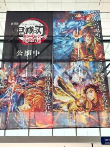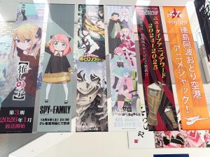 空港ビル 1階到着ロビーには、大型アニメ広告を展示中です。